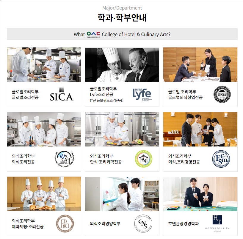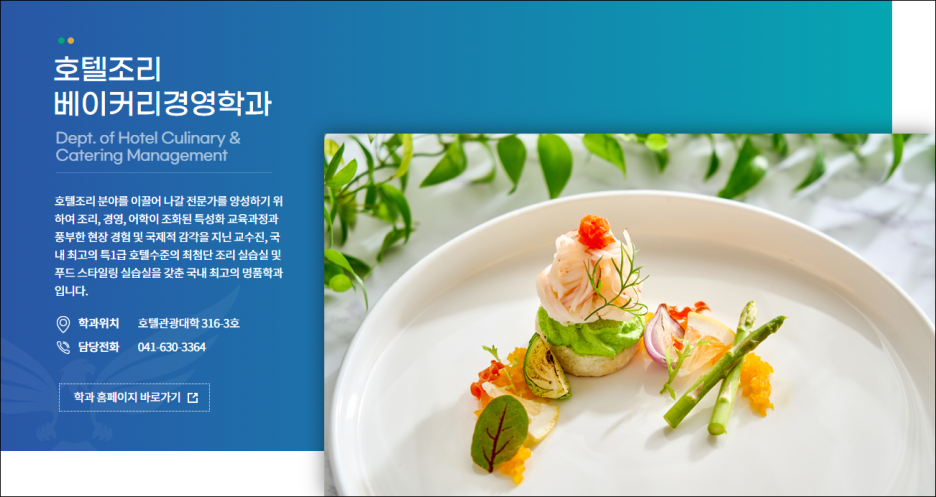해당 학교는 조리학과 또한 마찬가지로 높은 퀄리티의 수업과 취업연계를 진행하고 있으며