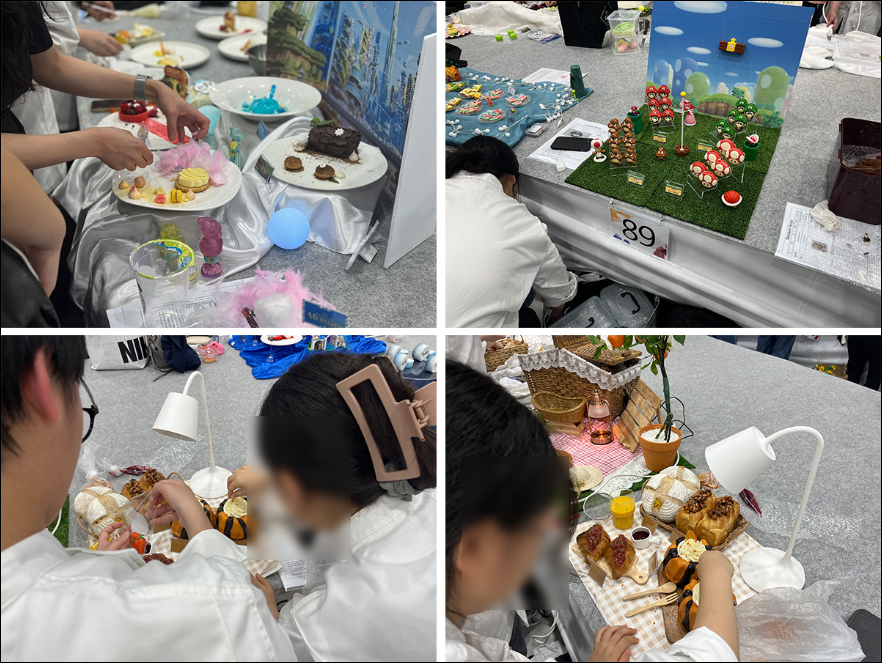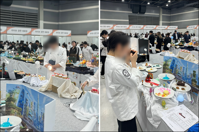 - 개인전이 아닌 팀전 위주로 진행을 하며, 조리 대회의 디저트 파트 라이브 경연으로 진행하기도 합니다.